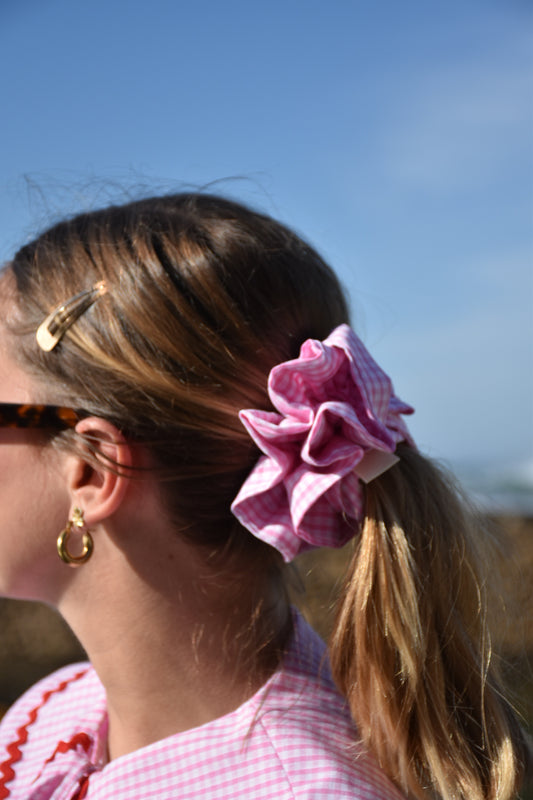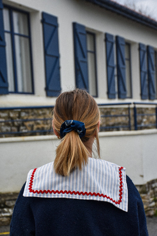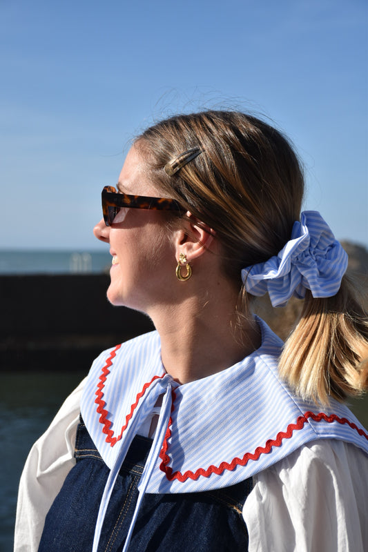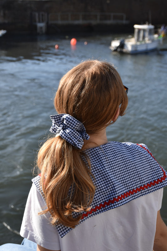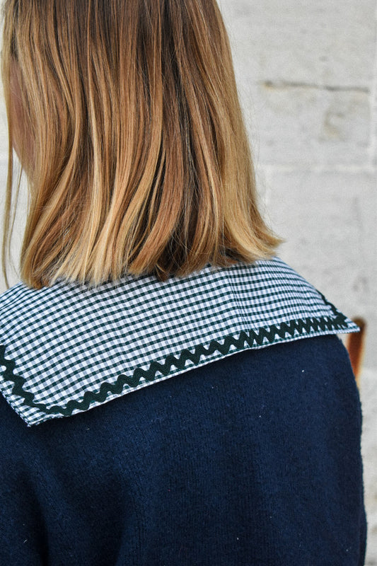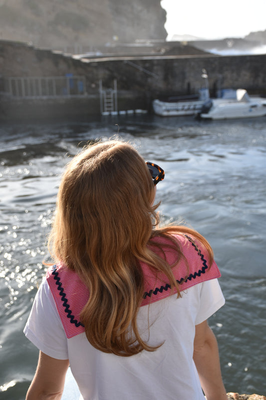 Col Claudine vichy rose & rouge - croquet bleu marine