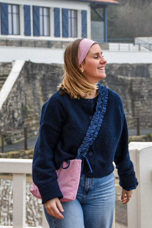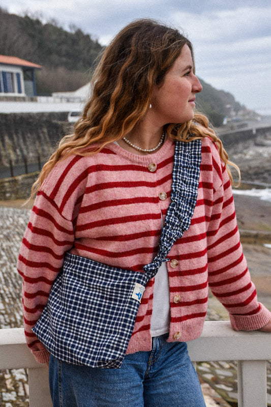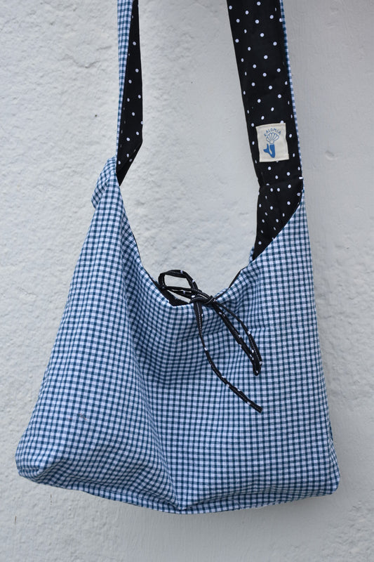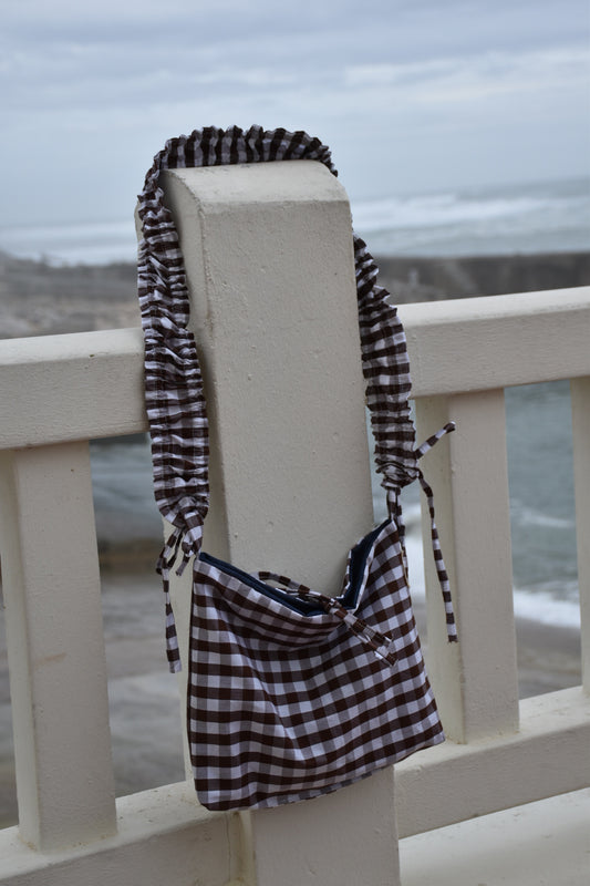 Sac ajustable réversible Vichy marron/ bleu denim - Pièce unique