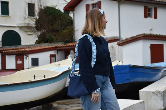 Le sac Perlette Réversible Vichy Bleu & Velours Bleu