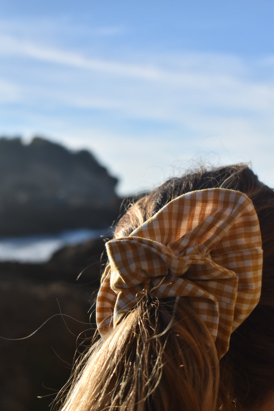 Son tissu choisi avec soin, souvent upcyclé, forme de jolis volants texturés qui dansent dans vos cheveux comme une brise d’été.