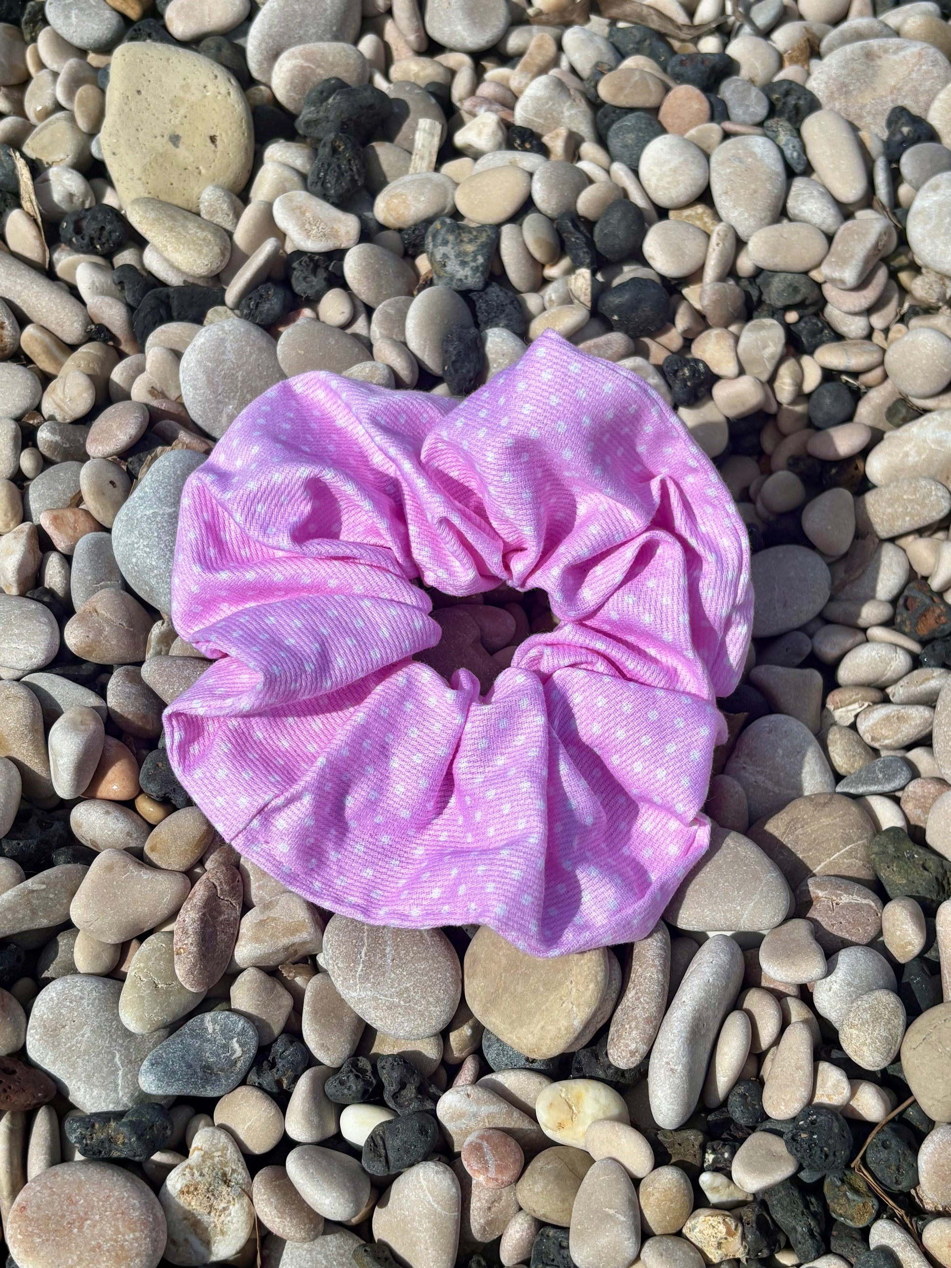 Pour attacher vos jolis cheveux salés, rien de mieux que le chouchou Rosita signé Kalomia. Son tissu rose à pois blancs apporte une touche rétro et coloré à vos tenues. Dans les cheveux ou autour du poignet, il vous accompagne partout !