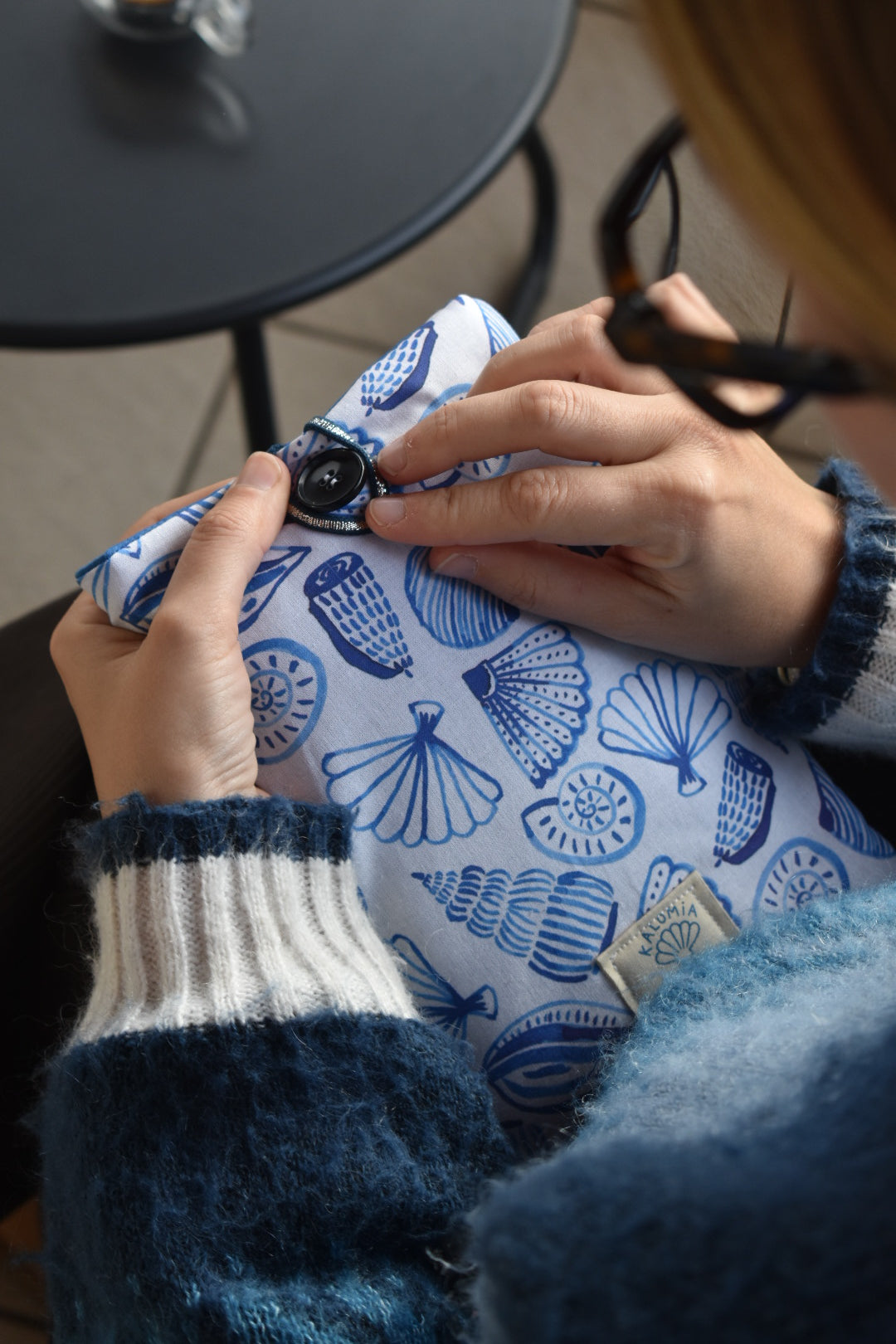 Protégez vos lectures avec la pochette de livre Kalomia, cousue à la main dans des tissus de récupération soigneusement sélectionnés. Sa fermeture pression maintient votre livre bien à l’abri, tout en ajoutant une touche pratique et élégante.