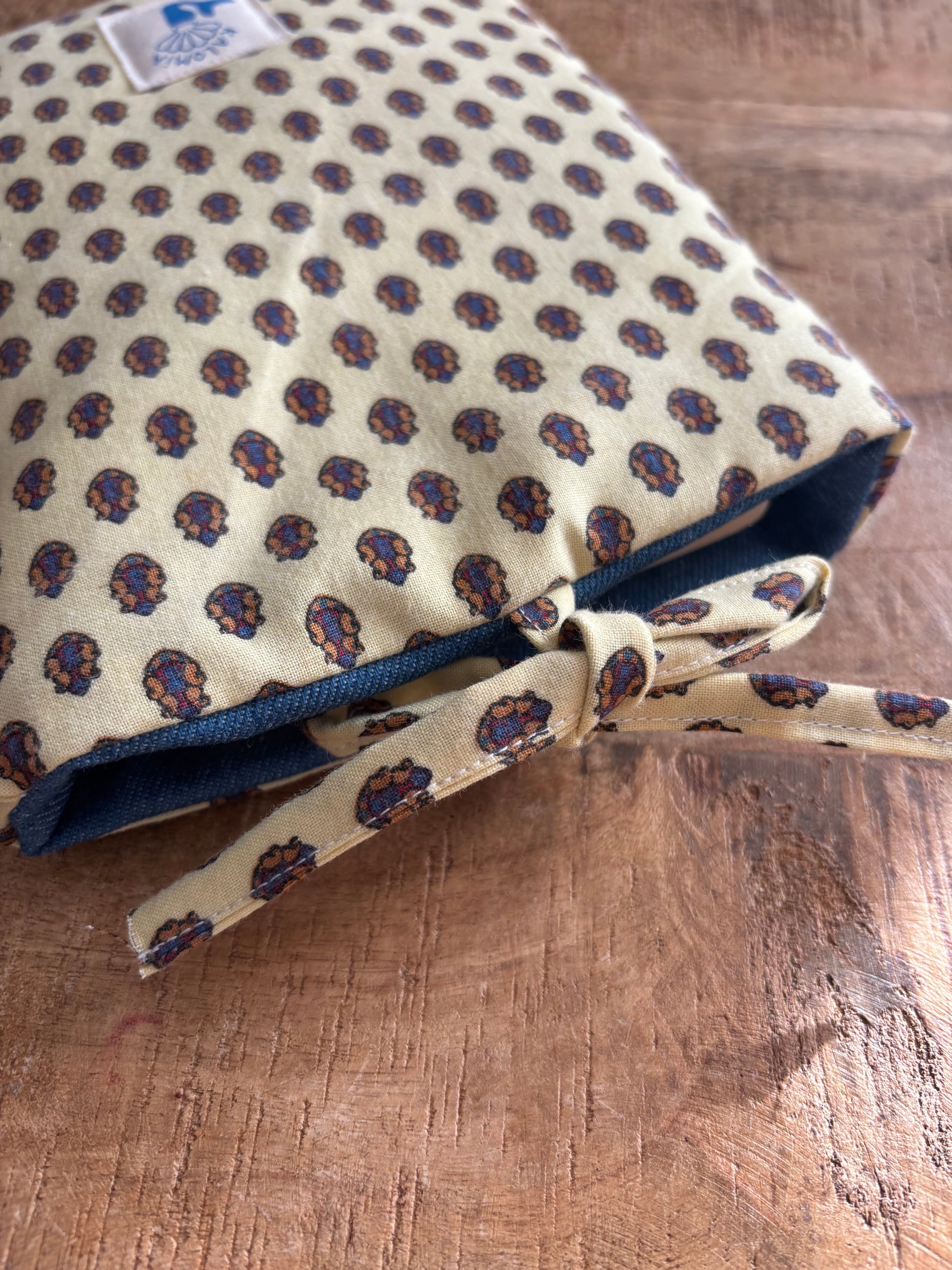 Protégez vos lectures avec la pochette de livre Kalomia, cousue à la main dans des tissus de récupération soigneusement sélectionnés. Sa fermeture pression maintient votre livre bien à l’abri, tout en ajoutant une touche pratique et élégante.