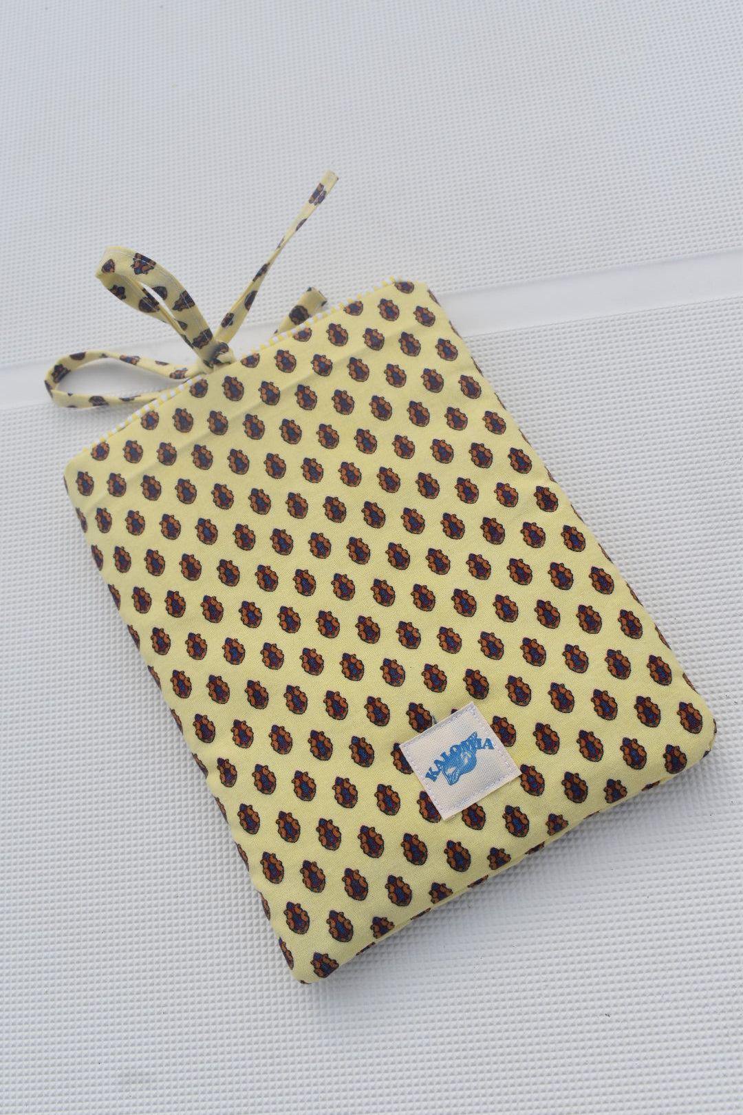 Protégez vos lectures avec la pochette de livre Kalomia, cousue à la main dans de jolis tissus de récupération soigneusement choisis. Sa fermeture par lien à nouer apporte une touche délicate et bohème, tout en maintenant votre livre bien en place.