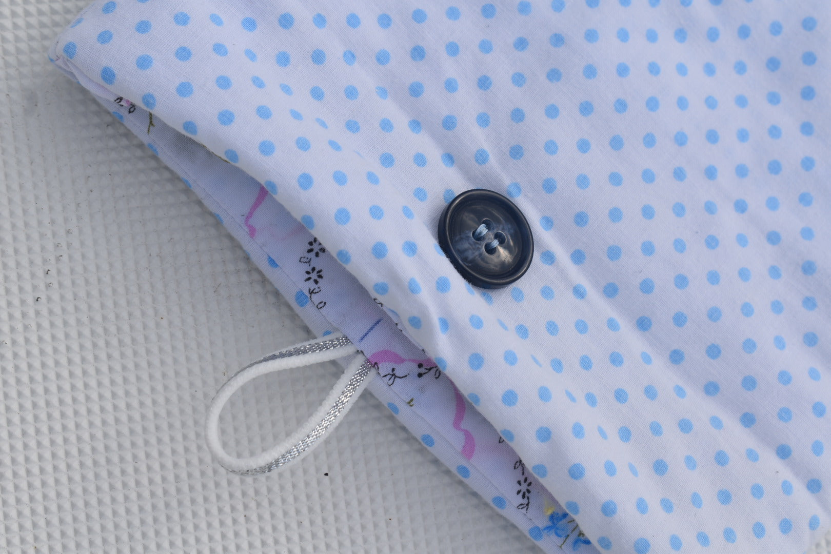 🪡 Composition : Tissus de récupération + bouton upcyclé / Doublure matelassée pour une protection optimale